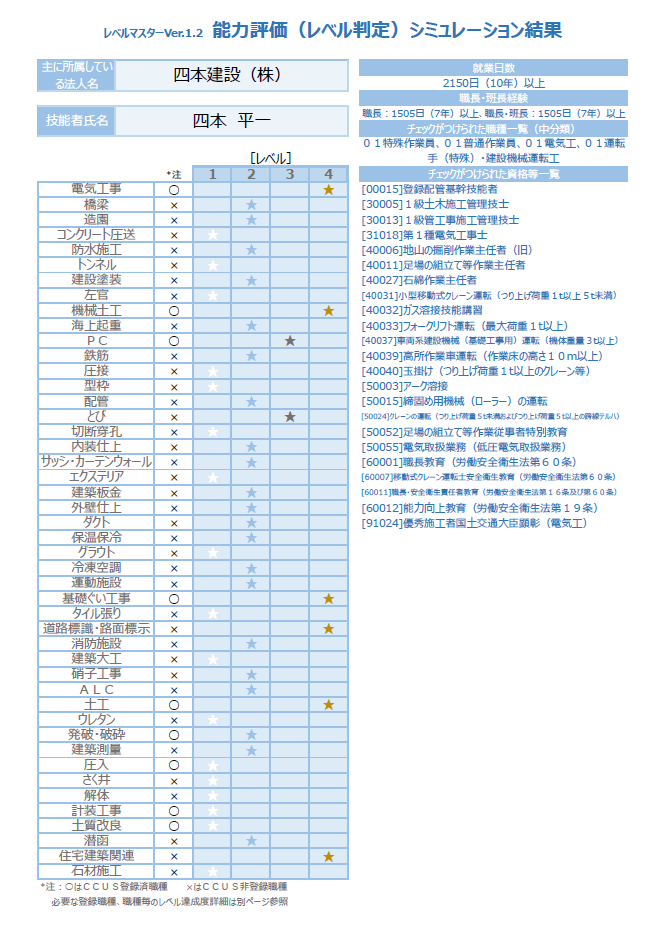 建設キャリアアップシステム-能力評価レベル判定シミュレーション